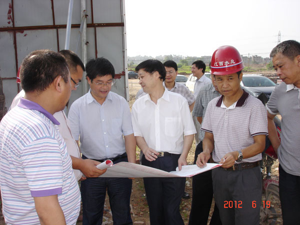 2012年6月19日,江西省水利廳廖瑞釗副廳長蒞臨我公司承建的上饒市三江導排渠延伸段工程視察指導工作。