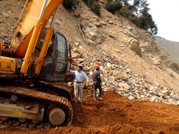 胡鴻煌副總經(jīng)理現(xiàn)場(chǎng)指導(dǎo)洞口水庫(kù)除險(xiǎn)加固工程圍堰施工