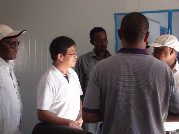 在埃塞政府總理水利特別顧問、埃塞南方州主席、我公司聶玉和副總經(jīng)理的陪同下,ABAY TSEHAY一行先后視察了KURAZ項目營地建設(shè)情況、詢問了解了工程建設(shè)進展情況。ABAY TSEHAY對我公司的營地建設(shè)及工程前期準備工作表示高度的認可,并強調(diào)了該民生工程的重要性及緊迫性。ABAY TSEHAY欣喜地通知我方:該工程項目設(shè)計圖紙及相關(guān)方案已經(jīng)進入了最終的審查及批復(fù)階段,工程即將全面開工,他對我公司未來高效的合同履行能力提出了殷切的期盼,