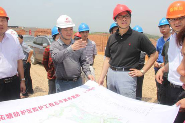 2013年5月31日,江西省水利廳黨委書記、廳長(zhǎng)孫曉山一行到我公司承建的柘塘防護(hù)工程和樟山防護(hù)工程進(jìn)行調(diào)研并指導(dǎo)工作。