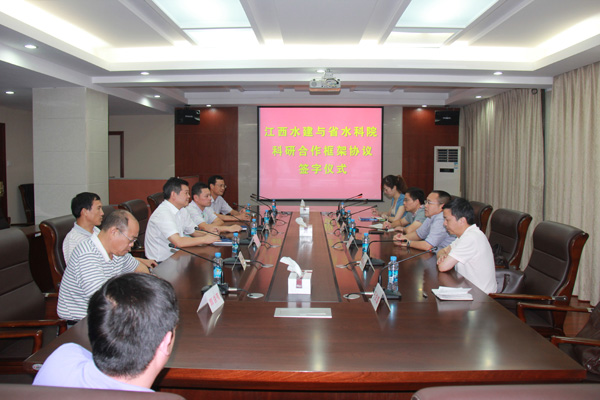 2013年9月3日,江西省水利水電建設(shè)有限公司與江西水利科學(xué)研究院簽訂了科研合作框架協(xié)議。公司董事長兼總經(jīng)理王元旦、省水科院院長方少文代表雙方單位在科研合作框架協(xié)議書上簽字。公司總經(jīng)濟師孫八根、紀(jì)委書記王延軍、副總經(jīng)理徐洪良,省水科院黨委副書記李洪任等出席簽字儀式。