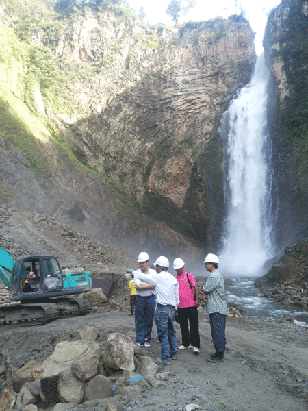 9月20日上午8時,王總一行抵達(dá)印尼棉蘭國際機(jī)場,隨即轉(zhuǎn)機(jī)前往PAKKAT水電站項目所在地。在項目經(jīng)理孫小軍等的陪同下,王總不辭辛苦深入到大壩施工區(qū),認(rèn)真察看了大壩、發(fā)電隧洞等施工現(xiàn)場,他與現(xiàn)場施工人員一一握手并表示節(jié)日的慰問。王總察看施工現(xiàn)場并聽取匯報后,對大壩的建設(shè)情況以及工程外觀形象控制表示滿意,并結(jié)合自己的經(jīng)驗(yàn)對豎井的施工提出了建設(shè)性建議,重點(diǎn)強(qiáng)調(diào)了豎井施工安全生產(chǎn)的重要性。