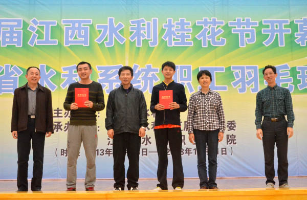 2013年10月20日,以“人水和諧,共筑中國夢”為主題的第七屆江西水利桂花節(jié)暨全省首屆水利職工羽毛球賽在江西水利職業(yè)學院順利閉幕。省水利廳副廳長羅小云、副巡視員周江紅、直屬機關(guān)黨委專職副書記張伯義、江西水利職業(yè)學院院長曾亞東出席閉幕式并為運動員頒獎;閉幕式由省水利廳直屬機關(guān)工會副主席池曉虹主持。