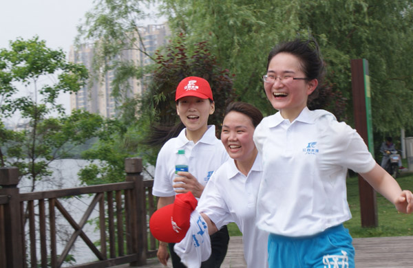 活動開始前,公司工會主席史偉作了簡短的動員講話,上午8:30健步走活動正式啟動。在工作人員的引導下,員工們邁著矯健的步伐大踏步的行走在美麗的艾溪湖湖畔?;顒又?,大家精神抖擻、意氣風發(fā),你追我趕、揮汗如雨,最后全部順利抵達終點,全程共計11公里。