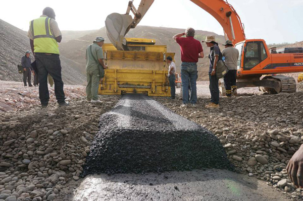 公司高度重視Wolkite瀝青混凝土芯墻的建設(shè),成立了以黃生寶為經(jīng)理的項目組領(lǐng)導班子,選派了一批技術(shù)過硬、經(jīng)驗豐富、善于學習的技術(shù)和操作人員,并從國內(nèi)專門聘請從事該方面工作的專家親赴現(xiàn)場進行技術(shù)指導和把關(guān)。在公司董事會的正確領(lǐng)導下,項目部全體成員緊緊圍繞著Wolkite瀝青混凝土芯墻項目全力施工。本著特事特辦的原則,國內(nèi)后勤組緊急采購發(fā)送了一大批施工設(shè)備,為項目開好頭打下了堅實的基礎(chǔ)。為了優(yōu)質(zhì)高效地完成任務(wù),項目組全體人員精誠團結(jié)、夙興夜寐,不計白天黑夜,不管分內(nèi)分外,取得的成果得到了業(yè)主和監(jiān)理的肯定。從制定施工方案和技術(shù)指標,到裝配實驗儀器和施工設(shè)備,從悶熱的室內(nèi)配合比工作,到烈日炎炎下的現(xiàn)場施工,無不凝結(jié)著大家的智慧與汗水。