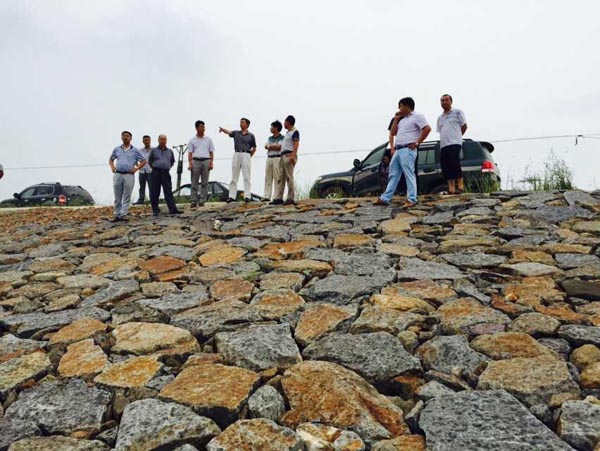 驗收工作組成員與專家現(xiàn)場察看工程質(zhì)量