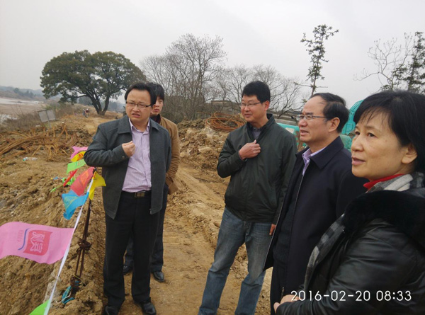 省水利廳副廳長楊丕龍(右二)一行來到施工現(xiàn)場指導(dǎo)工作