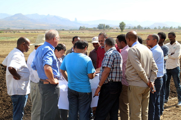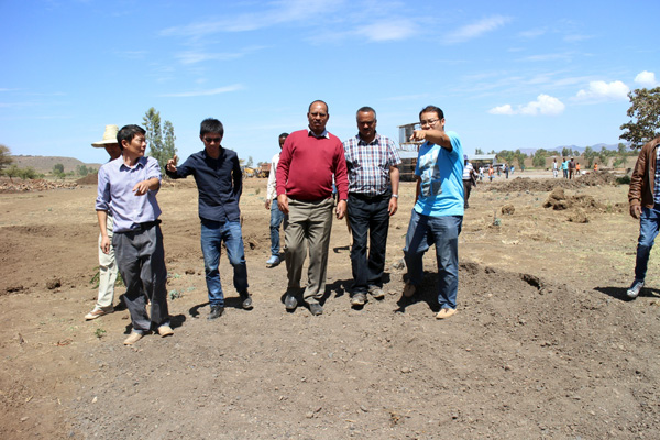 2016年3月20日,埃塞俄比亞聯(lián)邦水利能源部部長(zhǎng)Motuma Mekesa閣下及副部長(zhǎng)Kebede Gerba閣下帶領(lǐng)水利能源部尼羅河灌溉項(xiàng)目協(xié)調(diào)辦、阿姆哈拉州土地管理局、阿姆哈拉州尼羅河灌溉項(xiàng)目協(xié)調(diào)辦等項(xiàng)目各參建單位負(fù)責(zé)人到我公司承建的埃塞俄比亞Ribb一期灌溉項(xiàng)目視察。