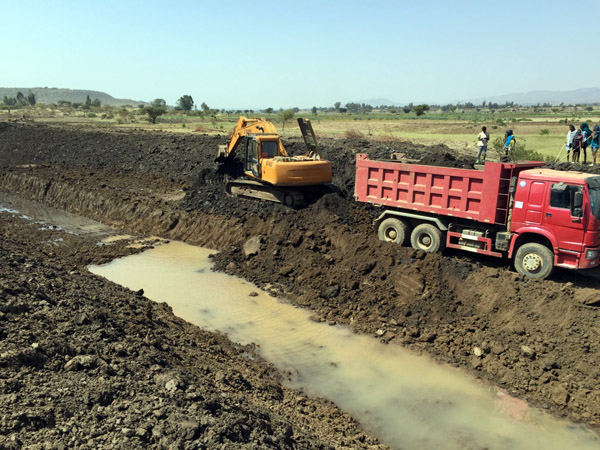 部長(zhǎng)Motuma Mekesa一行于上午抵達(dá)項(xiàng)目施工現(xiàn)場(chǎng),隨后對(duì)項(xiàng)目渠首及總渠段進(jìn)行參觀考察。埃塞公司副總經(jīng)理兼項(xiàng)目經(jīng)理黃生寶向部長(zhǎng)介紹了建設(shè)項(xiàng)目概況及項(xiàng)目施工進(jìn)度,就項(xiàng)目設(shè)計(jì)、征地等提出了建設(shè)性意見和建議,表達(dá)了以“服務(wù)社會(huì)”為宗旨,與各方一道以最快的速度推進(jìn)項(xiàng)目建設(shè)的積極態(tài)度。項(xiàng)目經(jīng)理黃生寶表示,我們將秉承我公司“健行天下,堰筑大同”的精神,以最好的質(zhì)量,最快的速度保證項(xiàng)目的實(shí)施。部長(zhǎng)先生對(duì)我們的現(xiàn)場(chǎng)建設(shè)以及積極的態(tài)度表示了肯定,要求設(shè)計(jì)、征地以及業(yè)主單位積極與施工單位合作,保證項(xiàng)目施工質(zhì)量,加快項(xiàng)目施工速度。同時(shí),相信我公司能堅(jiān)定信心,積極應(yīng)對(duì)困難與挑戰(zhàn),在有限的時(shí)間內(nèi)圓滿完成任務(wù)。