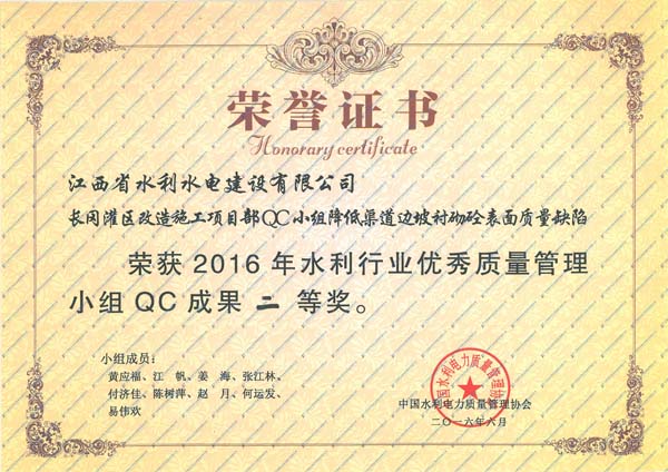 2016年6月20日至24日,中國(guó)水利電力質(zhì)量管理協(xié)會(huì)水利分會(huì)在安徽省安慶市,舉辦了2016年水利行業(yè)優(yōu)秀質(zhì)量管理小組成果發(fā)表會(huì),并在本次發(fā)表會(huì)上發(fā)布了156項(xiàng)QC成果。中國(guó)水利電力質(zhì)量管理協(xié)會(huì)水利分會(huì)組織評(píng)審專家,對(duì)發(fā)表的QC成果進(jìn)行了現(xiàn)場(chǎng)評(píng)審,對(duì)經(jīng)評(píng)審獲得一、二等獎(jiǎng)的單位進(jìn)行了表彰。本次成果發(fā)表會(huì)上,我公司共有3項(xiàng)QC成果獲一等獎(jiǎng),兩項(xiàng)QC成果獲二等獎(jiǎng),成績(jī)較往年有較大幅度提高。