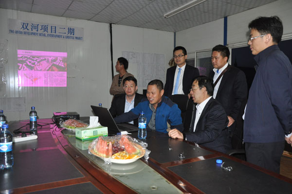 2016年7月22日,中非基金董事長(zhǎng)遲建新一行,考察我司投資并參建的雙河項(xiàng)目。遲董事長(zhǎng)對(duì)雙河項(xiàng)目表現(xiàn)出極大的興趣,不僅實(shí)地察看了雙河購(gòu)物中心,還親臨項(xiàng)目部營(yíng)地,聽(tīng)取有關(guān)雙河項(xiàng)目建設(shè)及招商情況匯報(bào),并就雙河項(xiàng)目投資收益及后續(xù)開(kāi)發(fā)事宜與我司人員進(jìn)行了交流。