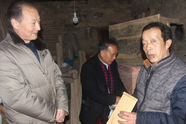 在貧困戶羅華妹家里,當(dāng)老人接過大米和食用油等慰問物品后,頓時(shí)眼含淚花,激動(dòng)的拉著史主席的手說:“這么冷的天,你們能來看我這個(gè)老太婆,我真的很高興,共產(chǎn)黨的政策真好!”,史主席鼓勵(lì)羅華妹說:“要堅(jiān)定信心,黨的政策很好,我們也會(huì)多想一些能改變家庭生活和增加收入的辦法,你們家里要積極配合黨委政府和村委會(huì)的工作,爭(zhēng)取早日脫貧致富。”