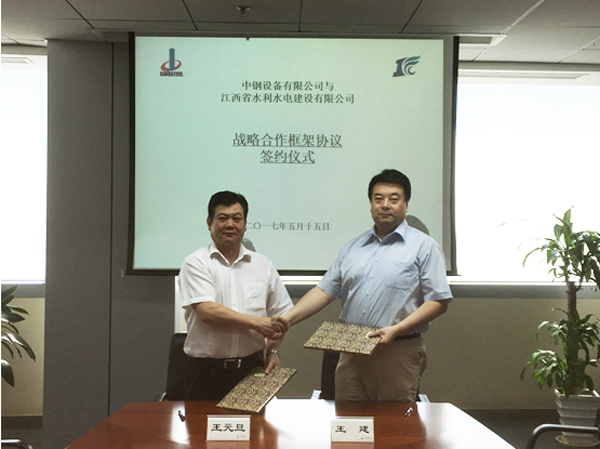 2017年5月15日,江西省水利水電建設(shè)有限公司與中鋼設(shè)備有限公司戰(zhàn)略合作框架協(xié)議簽約儀式在北京舉行。公司董事長王元旦與中鋼設(shè)備有限公司總經(jīng)理王建代表雙方簽署了戰(zhàn)略合作框架協(xié)議。公司海外公司副總經(jīng)理熊昊冠和中鋼設(shè)備能源與基礎(chǔ)設(shè)施部副部長閆永軍、國際市場部副部長王思奇、市場主管姬曉軍參加簽字儀式。王建表示中鋼公司有著海外平臺優(yōu)勢,江西水建擁有水利水電、房建和市政領(lǐng)域的技術(shù)優(yōu)勢,希望雙方以此次戰(zhàn)略合作簽署為契機(jī),借助各自在資源、業(yè)務(wù)等方面的綜合優(yōu)勢,在巴基斯坦市場以及其他國別市場攜手共進(jìn),推進(jìn)重點(diǎn)項(xiàng)目落地,共謀發(fā)展。公司董事長王元旦對中鋼設(shè)備的支持表示感謝。他表示此次合作將會(huì)是一個(gè)友好的開端,真誠希望雙方在國家“一帶一路”戰(zhàn)略指引下進(jìn)一步加深交流,探索多方位、深層次合作,實(shí)現(xiàn)互利共贏。