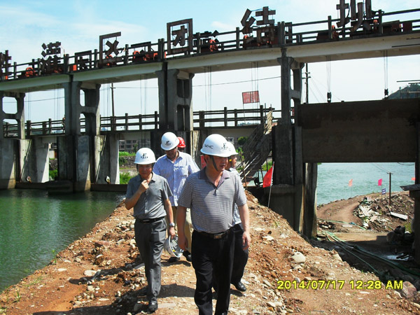 2014年7月17日上午,夏日炎炎,公司董事長(zhǎng)兼總經(jīng)理王元旦一行首先來(lái)到廣豐縣團(tuán)結(jié)水閘除險(xiǎn)加固工程施工現(xiàn)場(chǎng),親切看望了工地全體員工。