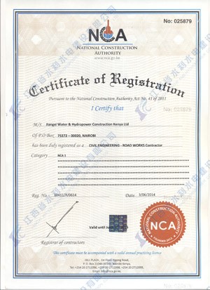 江西省水利水電建設有限公司肯尼亞分公司接到通告后,積極準備相關(guān)資料,憑借公司的技術(shù)實力和肯尼亞市場的良好業(yè)績,最終取得所有六項的一級證書。其中包括:水利施工一級,公路工程施工一級,房屋建筑工程施工一級,結(jié)構(gòu)施工一級,電力工程施工一級和機電工程施工一級,有力地提升公司的品牌影響,提升了公司資信競爭力,為公司在肯尼亞各項工作的全面深入開展創(chuàng)造了積極有利的條件。