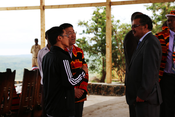 結(jié)束對我公司KURAZ項目視察后,覃儉參贊一行返回阿巴門奇市代表中國駐埃大使出席了阿巴門奇市建市50周年慶典活動及捐贈活動。埃塞俄比亞總理海爾瑪里亞姆及埃方外交部長接見中方一行,并握手致謝。郭惠明主任就江西水建在埃塞俄比亞的發(fā)展情況及南方州KURAZ項目的建設(shè)進展情況向埃塞俄比亞總理、外長作了匯報?;顒咏Y(jié)束后,中方一行還多次分別與南方州政府相關(guān)要員進行了會談。