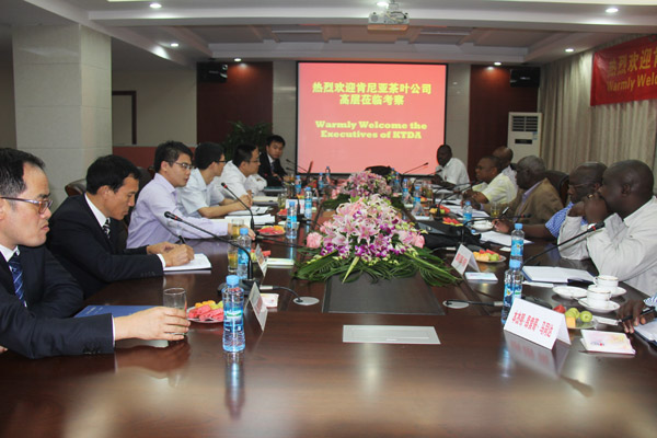 2014年9月上旬,肯尼亞茶葉發(fā)展有限公司董事Philip Kibirech NG’Etich先生一行七人應(yīng)邀來(lái)我公司參觀考察,旨在加深雙方了解和建立互惠共贏的合作??偨?jīng)理徐洪良代表公司對(duì)他們的到來(lái)表示熱烈歡迎,總會(huì)計(jì)師王義生、總工程師胡鴻煌及海外公司相關(guān)負(fù)責(zé)人參加了會(huì)見(jiàn)并陪同肯尼亞客人參觀了公司總部各部門。