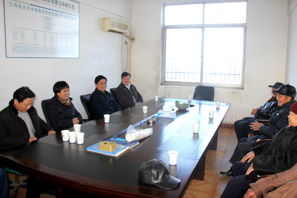 1月15日下午,省水利廳廳長(zhǎng)孫曉山率領(lǐng)廳副巡視員周江紅、廳辦公室主任王純、廳人事處處長(zhǎng)戴金華和離退休干部處處長(zhǎng)張魯江等前往我公司南昌縣職工生活基地,看望慰問(wèn)離退休老同志。公司董事長(zhǎng)兼總經(jīng)理王元旦陪同參加了慰問(wèn)活動(dòng)。