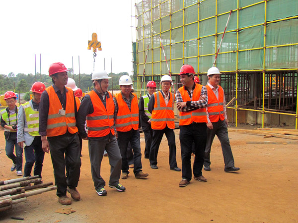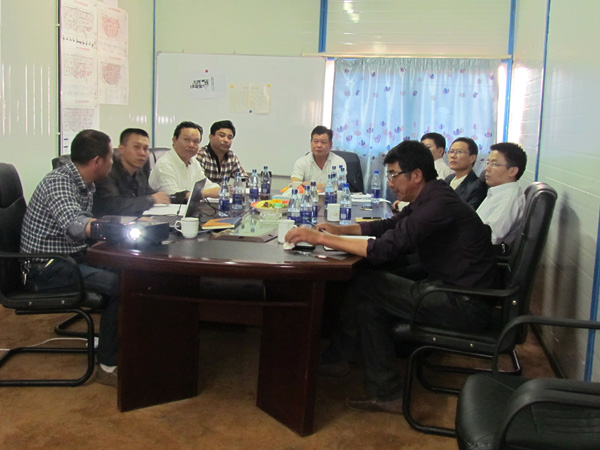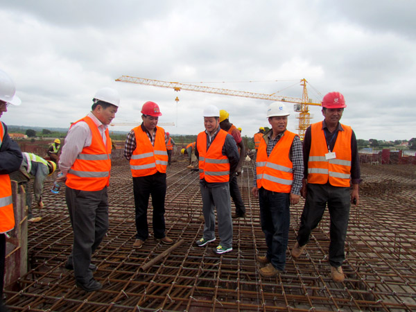 2014年12月1日上午,公司董事長(zhǎng)王元旦、副總經(jīng)理張周平、黨委副書記王延軍、副總經(jīng)理黃鄭民一行聯(lián)合體江西晶太公司董事長(zhǎng)淦晶、公司肯尼亞辦事處主任賀翔等前往肯尼亞雙河項(xiàng)目施工現(xiàn)場(chǎng)進(jìn)行視察,檢查項(xiàng)目進(jìn)展情況。