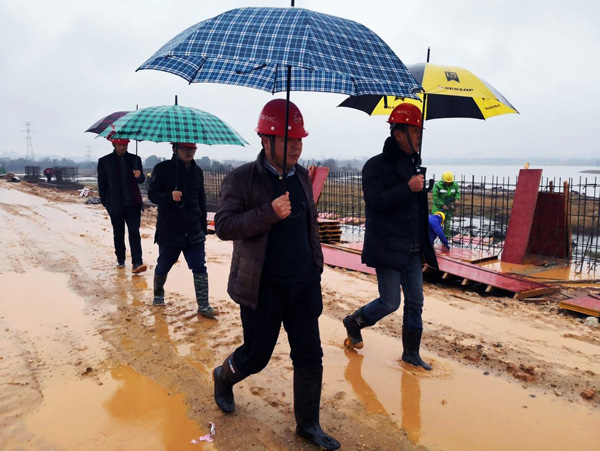 1月11日,由公司總工程師胡鴻煌、首席專家郭洪有、工程部副部長王海鵬組成的安全生產(chǎn)檢查組,冒雨來到禾河大道路堤結合改造工程施工2標段,進行安全生產(chǎn)、度汛安全檢查。