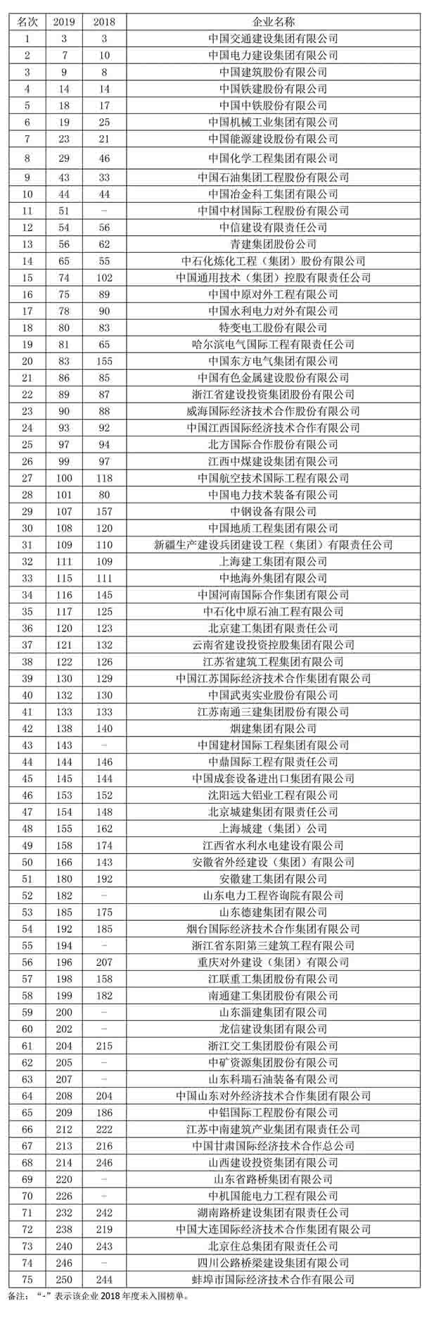 8月22日,2019年度美國《工程新聞紀(jì)錄(ENR)》“全球250家國際承包商”榜單揭曉。