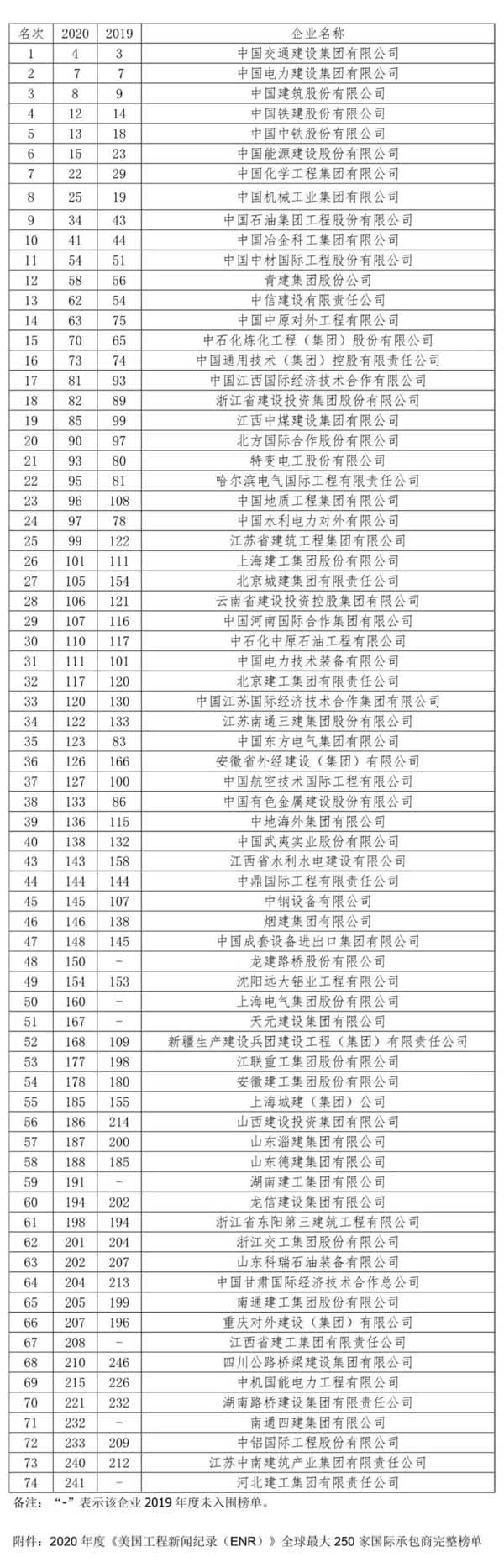 美國當地時間8月20日,2020年度美國《工程新聞紀錄(ENR)》“全球250家國際承包商”榜單發(fā)布。