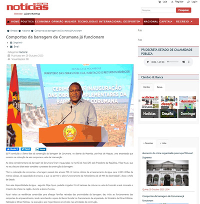 集團(tuán)資訊經(jīng)過(guò)一千多天夜以繼日的辛勤努力,集設(shè)計(jì)、制造、施工于一體的莫桑比克Corumana大壩項(xiàng)目終于迎來(lái)了竣工的喜悅時(shí)刻。10月29日,莫桑比克總統(tǒng)紐西閣下親臨現(xiàn)場(chǎng),為項(xiàng)目揭牌剪彩。