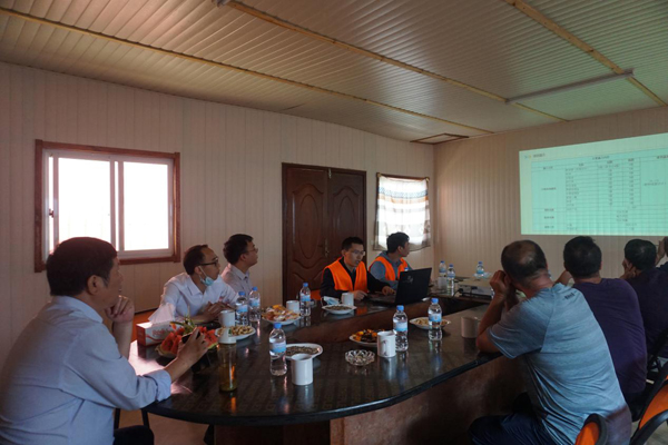 隨后,張周平具體查看了軍事學(xué)院項目的整體建設(shè)情況,詳細(xì)詢問了員工生活生產(chǎn)物資等后勤保障工作。座談會上,張周平首先聽取了項目負(fù)責(zé)人黃飛翔對項目生產(chǎn)經(jīng)營的工作匯報,詳細(xì)了解了項目當(dāng)前進(jìn)展、面臨的困難、采取的措施和下一步工作計劃。張周平對項目部在疫情期間積極作為、勇保履約的努力表現(xiàn)給予了充分肯定,并對后期工作開展提出了明確的要求。他強(qiáng)調(diào),一是要嚴(yán)格做好疫情防控以及其他疾病或意外事故的預(yù)防,時刻將全體員工的身體健康和生命安全放在首位;二是要嚴(yán)把質(zhì)量關(guān),打造精品優(yōu)質(zhì)工程,增強(qiáng)公司核心競爭力;三是要推動項目高質(zhì)高效履約,樹立良好的公司形象,為公司進(jìn)一步拓展當(dāng)?shù)厥袌龊粚嵒A(chǔ)。