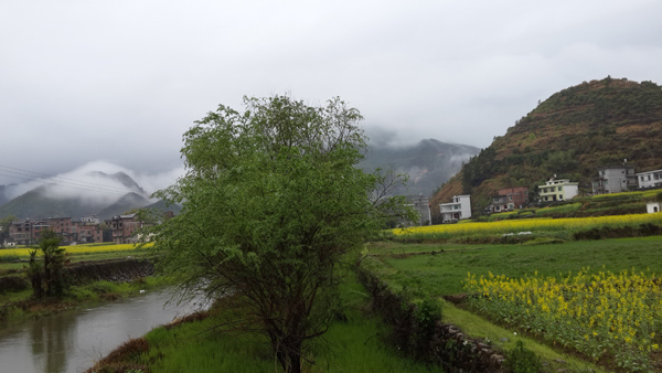 玉山縣樟村鎮(zhèn)防洪工程項目所在地,一眼望去,左邊是革命教育基地懷玉山,右邊是世界地質(zhì)公園三清山(如上圖)。
