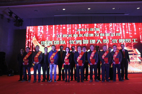 隨后,公司董事長王元旦、總經(jīng)理徐洪良和相關(guān)領(lǐng)導(dǎo)向海外公司等10個(gè)優(yōu)秀團(tuán)隊(duì)、郭洪有等22位優(yōu)秀管理者和周家煌等30位優(yōu)秀員工進(jìn)行頒獎,感謝他們在過去的2015年為江西水建發(fā)展所作出的貢獻(xiàn)。