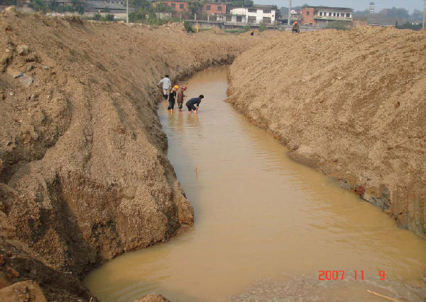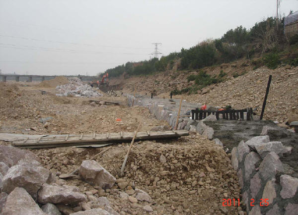 堤基清理:必須對(duì)堤內(nèi)、外坡腳線(xiàn)外1m范圍內(nèi)的亂石、墳?zāi)埂⒏鞣N建筑物和垃圾、雜草、樹(shù)木、樹(shù)根、腐植土及淤泥全部清除,并棄至背水坡腳以外或指定場(chǎng)地,水井、泉眼、洞穴等按設(shè)計(jì)要求處理,并經(jīng)驗(yàn)收確認(rèn)合格為止。