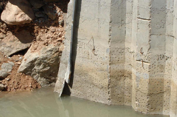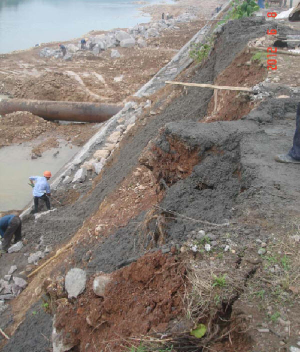 ①土石結(jié)合部的土料填筑質(zhì)量(壩體與溢洪道、與山體);砌體、砼結(jié)構(gòu)、山體與土體之間必須設(shè)置截水墻!例:新疆聯(lián)豐水庫(kù)