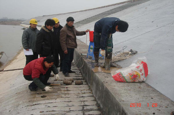 ※ 重點(diǎn)檢查水庫(kù)的險(xiǎn)情是否已按設(shè)計(jì)要求給予消除;工程質(zhì)量是否按規(guī)定檢驗(yàn),各項(xiàng)檢測(cè)數(shù)據(jù)是否滿(mǎn)足設(shè)計(jì)要求或相關(guān)標(biāo)準(zhǔn):土方的壓實(shí)度、滲透系數(shù);混凝土(含預(yù)制塊)的抗壓強(qiáng)度、抗凍、抗?jié)B、彈性模量;砂漿的抗壓強(qiáng)度;灌漿的壓水試驗(yàn)結(jié)果(透水率Lu):固結(jié)灌漿≮5%、帷幕灌漿≮10%。